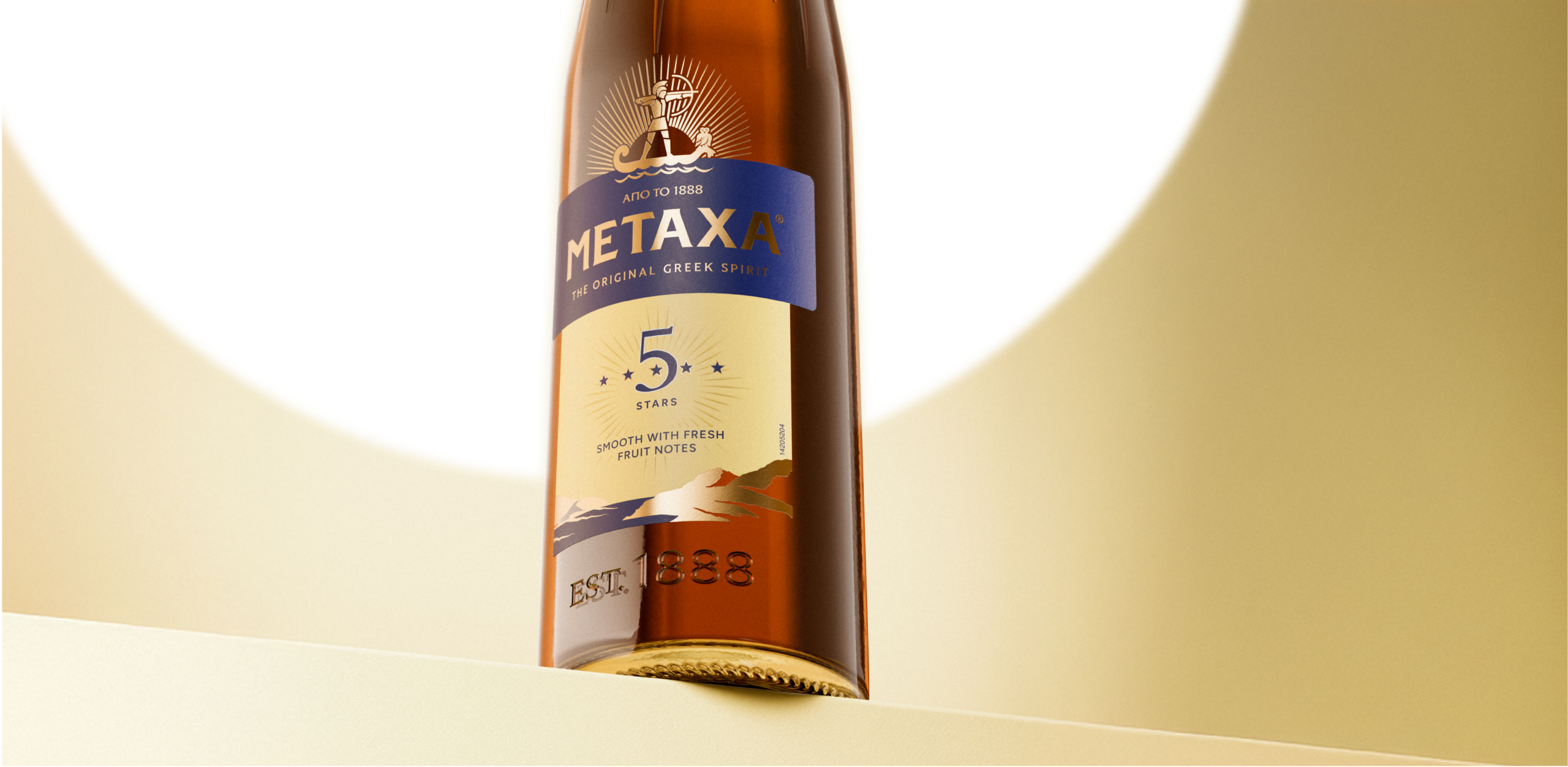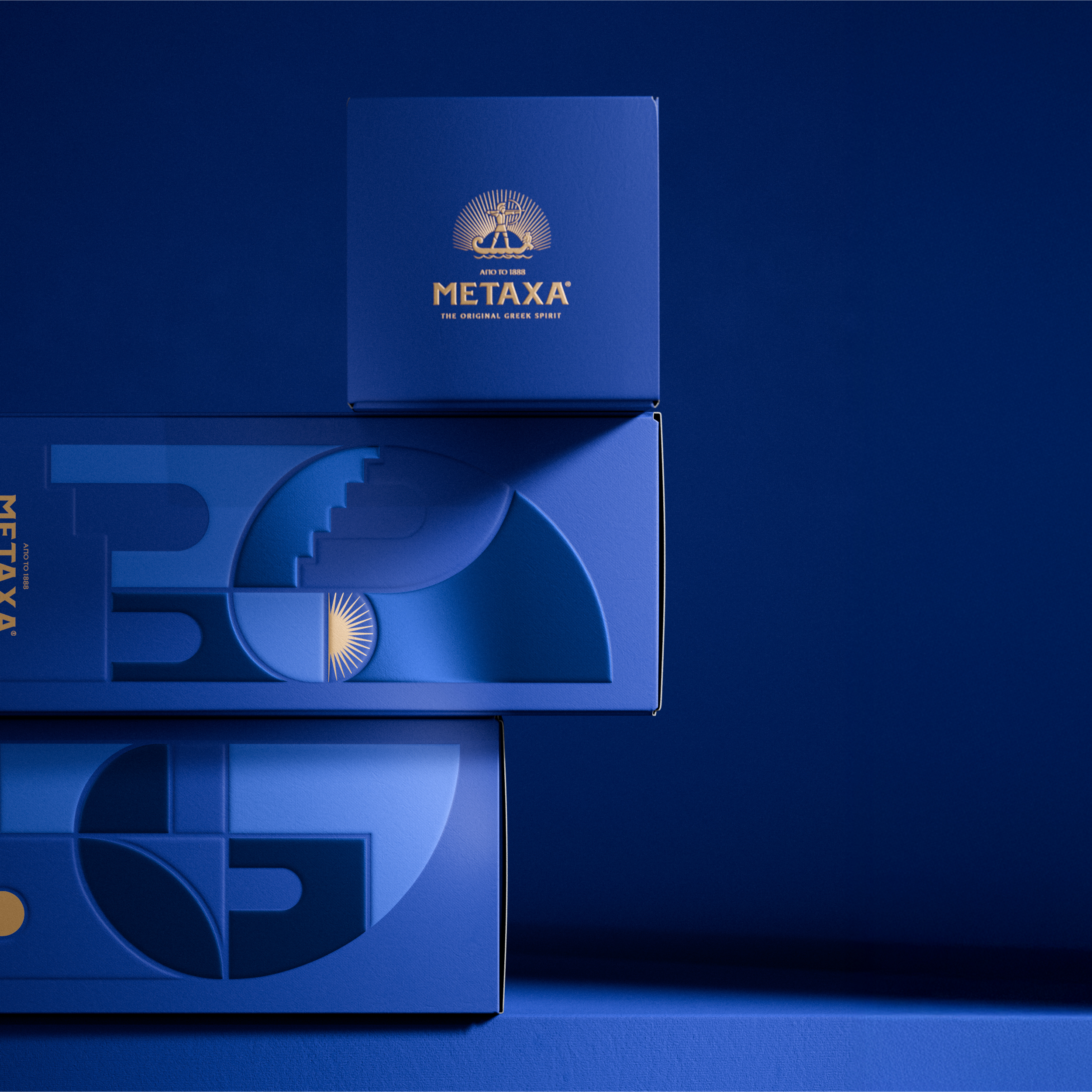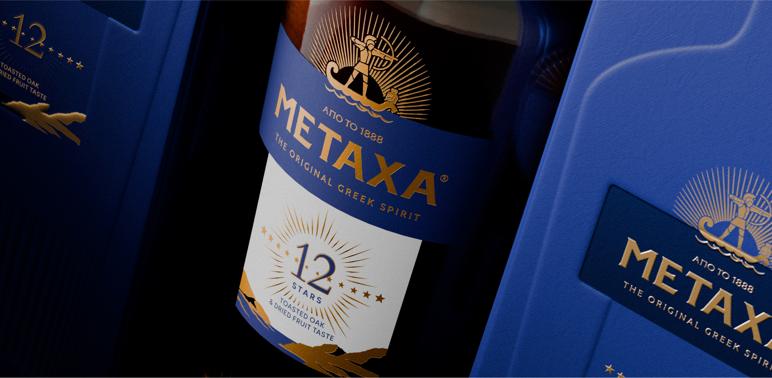 DDOI reinvented Metaxa’s identity by embracing Greek stereotypes : sun, blue, white, islands, and the myth of Samos.The 5 Stars and 12 Stars now embody the Mediterranean rhythm : zenith and sunset, tied to moments of consumption.Round shapes, stylized solar motifs, and a bold brand identity create an instantly recognizable visual language.